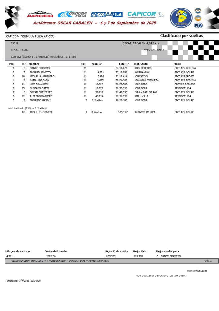 Novedades Turismo Cordobés Histórico CRAVERO, MARTINEZ, SPINAZZE Y SAYES CANTARON VICTORIA EN LA SEXTA FECHA DE CAPICOR 7 septiembre, 202521 septiembre, 2025 Celia Torres Pasado el mediodía de este domingo, se completaron las competencias finales de la sexta fecha en el “Autodromo Oscar Cabalen”. Share Facebook Twitter Pinterest Linkedin