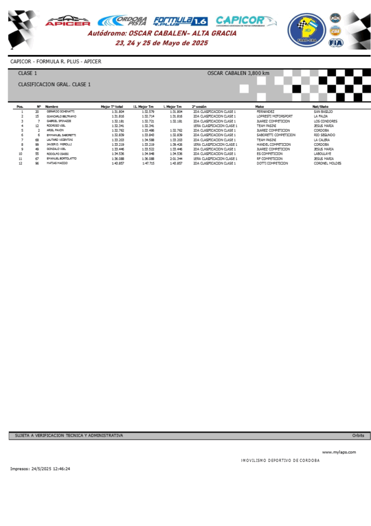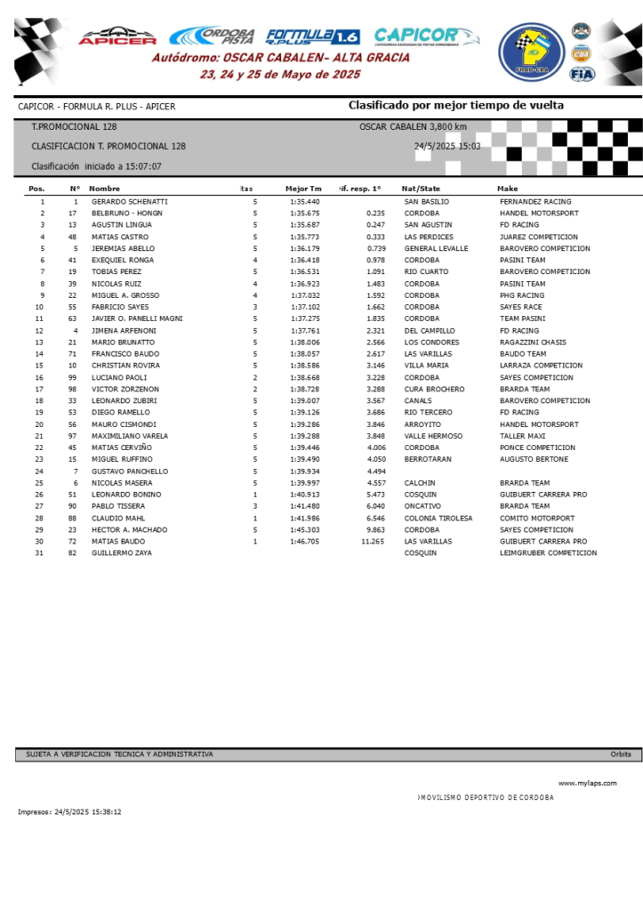 Gerardo Schenatti logro mejorar el registro de la primera Clasificacion y se adueñó de la Pole Position definitiva en la Clase 1. Lo mismo hizo en la numerosa categoría Turismo Promocional 128, anotando una nueva pole en la categoría.