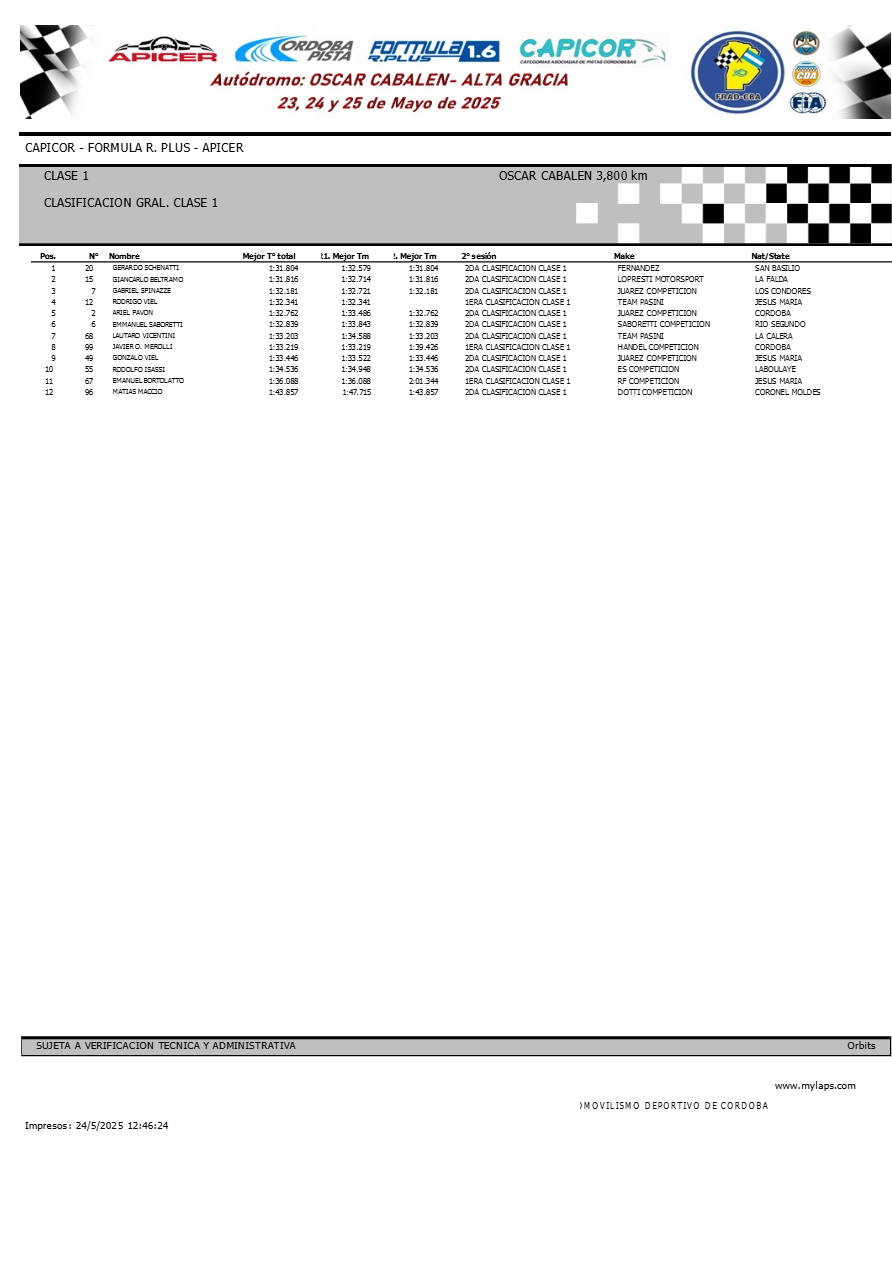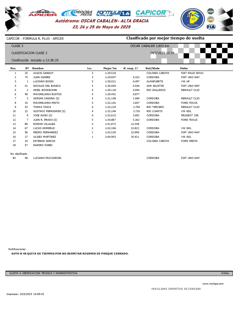 Con un agradable clima sobre la comuna de Santa Ana, comenzaron a cumplirse las clasificaciones de la tercera fecha para las cuatro divisionales de C.A.PI.COR en el Autodromo Oscar Cabalen.